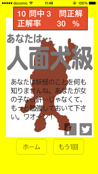 ゲームやアニメを一通り知っている人にはやや簡単なクイズですが、アニメなど見ていないと答えられないものも多くあり、クイズとして十分楽しめます。ただ、問題はどれもシンプルで理解しやすいものばかりなので、妖怪ウォッチにはまっているお子さんとクイズ対決をしてみるのも楽しみの幅が広がりそうです。また、正解率によって「「人面犬級」や「ジバニャン級」など等級が表示され、解説もあるので正解率を上げるモチベーションにもなります。